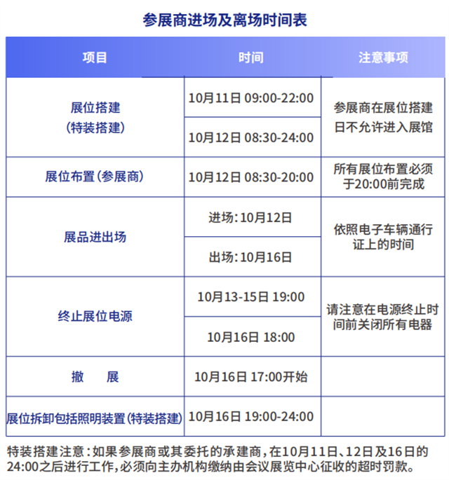 由于主辦方預計12日屆時系統將會非常繁忙,因此強烈建議參展商在進場前預先換領電子入場證,在抵達時展示e-Badge可直接進入展覽場地開始布展。