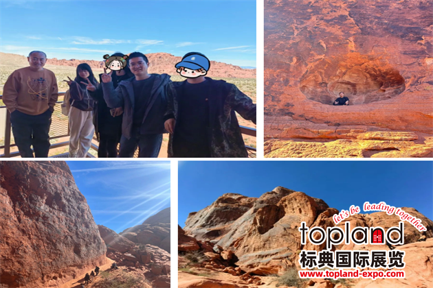 參展之余,新天展團還游覽了內華達州的第一個州立公園——火焰谷。火焰谷被稱為地球上最像火星的地方,穿梭在巨大砂巖中,到處都是各種造型的紅色的砂巖,怪石嶙峋,鬼斧神工,如同火焰燃燒一樣
